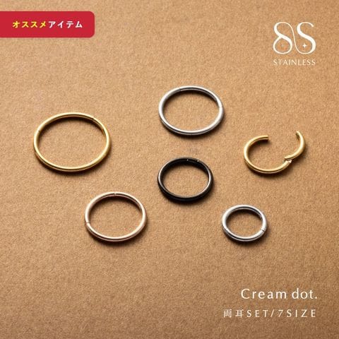 ピアス ステンレス 金属アレルギー サージカルステンレス レディース 両耳用 金属アレルギー対応 つけっぱなし フープ 極細 1mm幅 7サイズ 中折れ キャッチレス 耳たぶフィット フィット ブラック cream dot ゆうパケット [ゴールド_12mm]