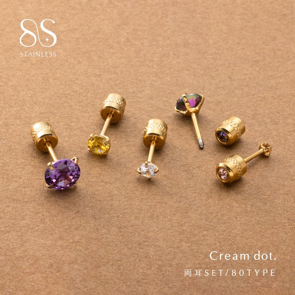 キャッチが落ちないネジロック式のスタッドピアス。2mm~6mmのサイズ、ボディーカラー、ストーンカラーなど幅広く選べる全80展開です。同色のビジューが煌くキャッチで、前後どちらから見ても可愛い◎必ず使えるベーシックなデザインだから、シーンに合わせて複数買いするのもオススメ♪錆びにくく傷に強いステンレス製です。