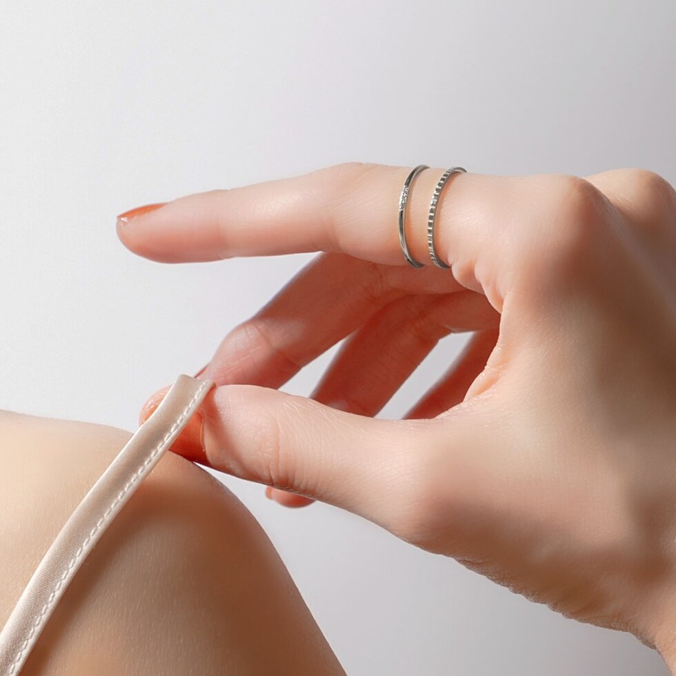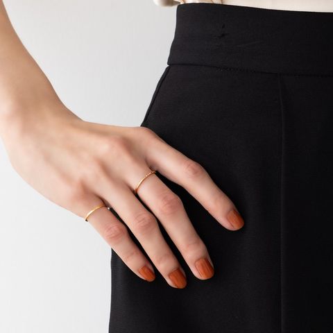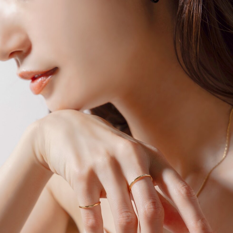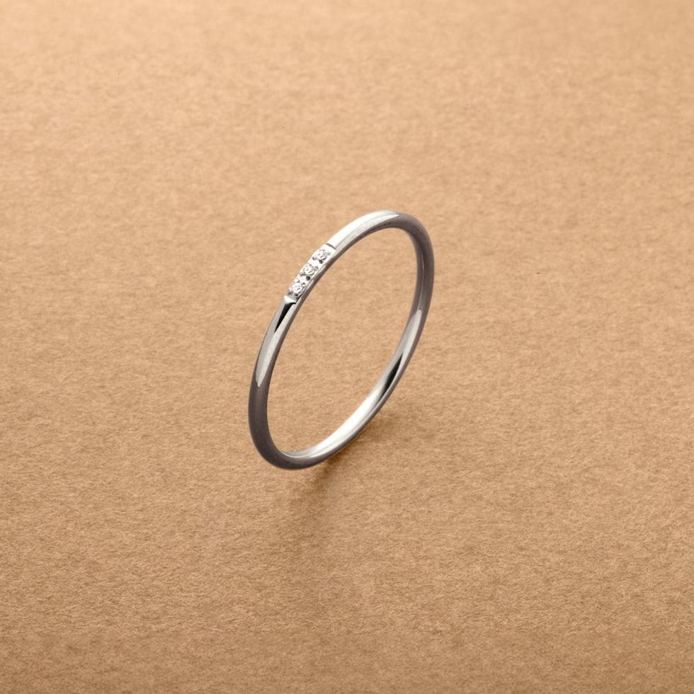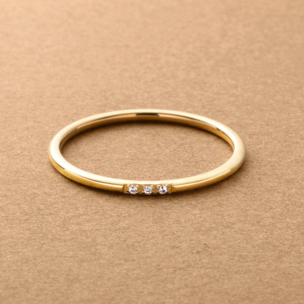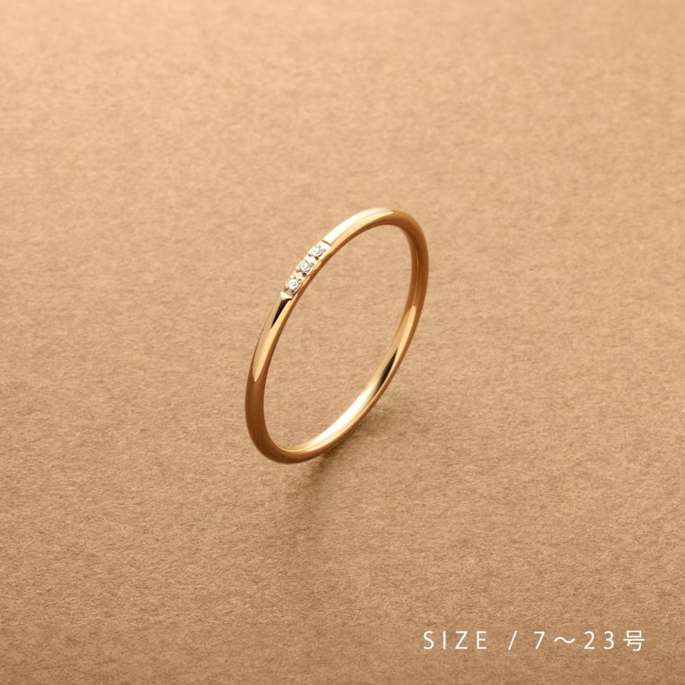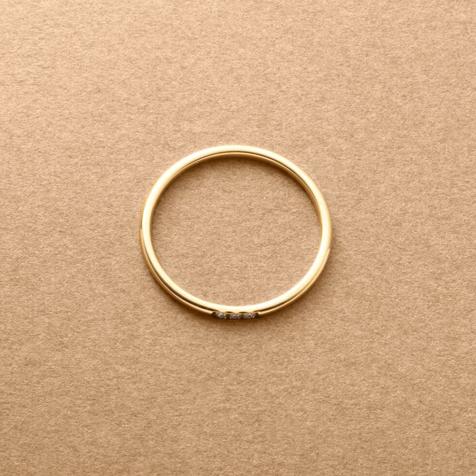 さりげなく煌めく、3石ビジューのベーシックリング。肌馴染みのいい華奢なデザインと艶めきが、手元に洗練された印象を添えてくれます。きれい目からカジュアルスタイルにもさらりと付けれて、シーンを選ばず活躍してくれるアイテムです。