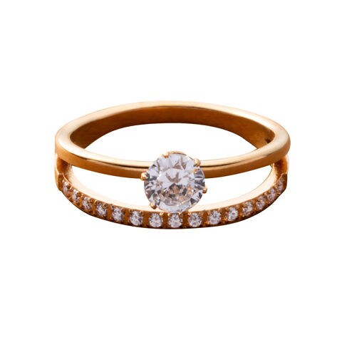 優美な雰囲気漂うビジューリング。立体的に輝くクラウン台座のビジューと繊細なビジューラインが、指先を美しく演出します。9号~20号のサイズ展開と錆びにくく傷に強いステンレス製で、贈り物にも喜ばれるひと品。