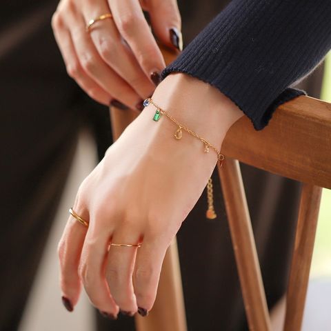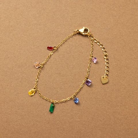 マルチカラーのビジューが大人可愛い彩りを添えるブレスレット。ひとつひとつデザインの異なるビジューと、アジャスターエンドのハートモチーフが気分を上げてくれるひと品◎錆びにくいステンレス製でデイリーに活躍するアイテムです。