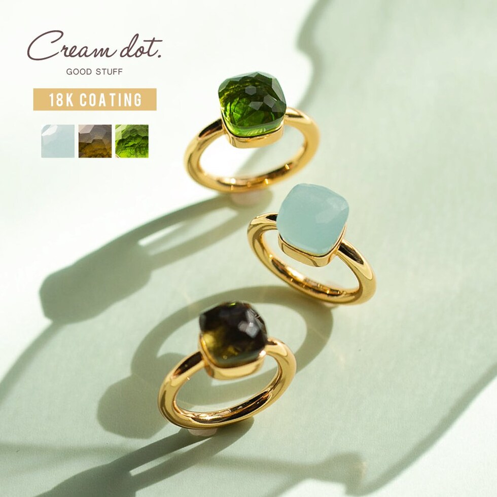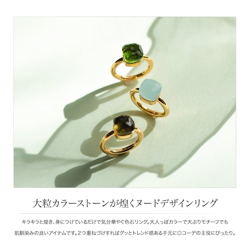 リング 指輪 レディース ヌードリング 人工水晶 カラーストーン 大ぶり 大粒 多面カット アクアマリン プラシオライト グリーンクォーツ cream dot ゆうパケット [プラシオライト_17号]