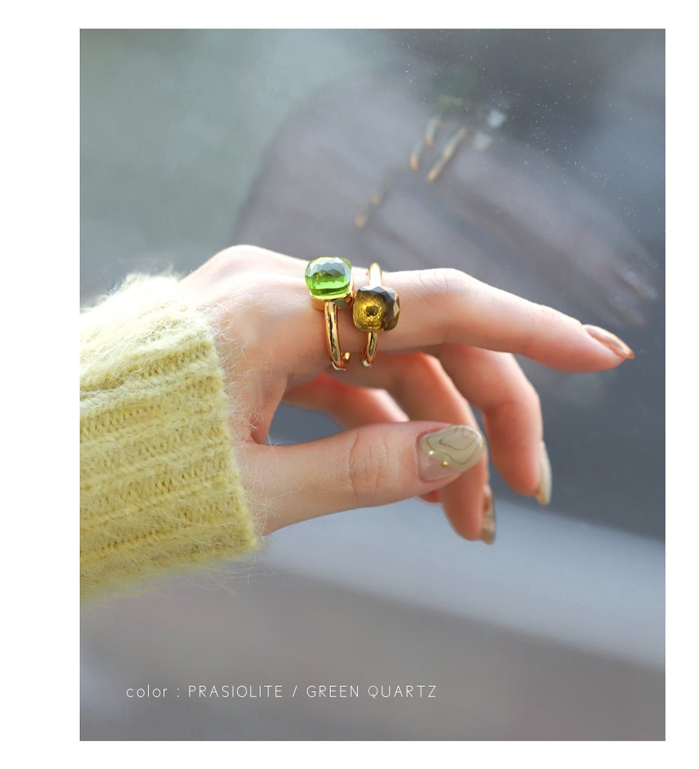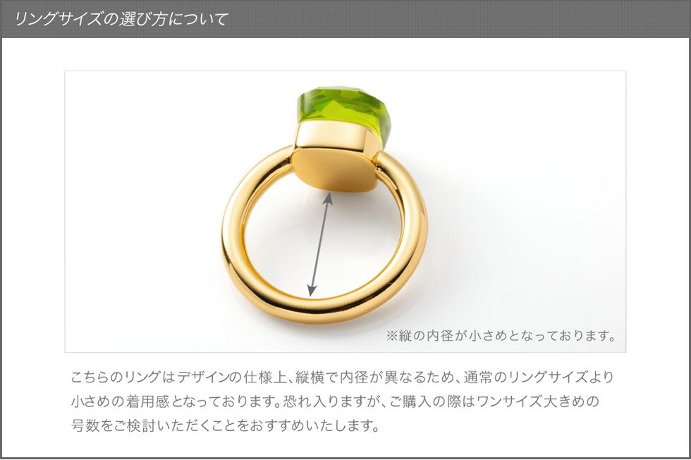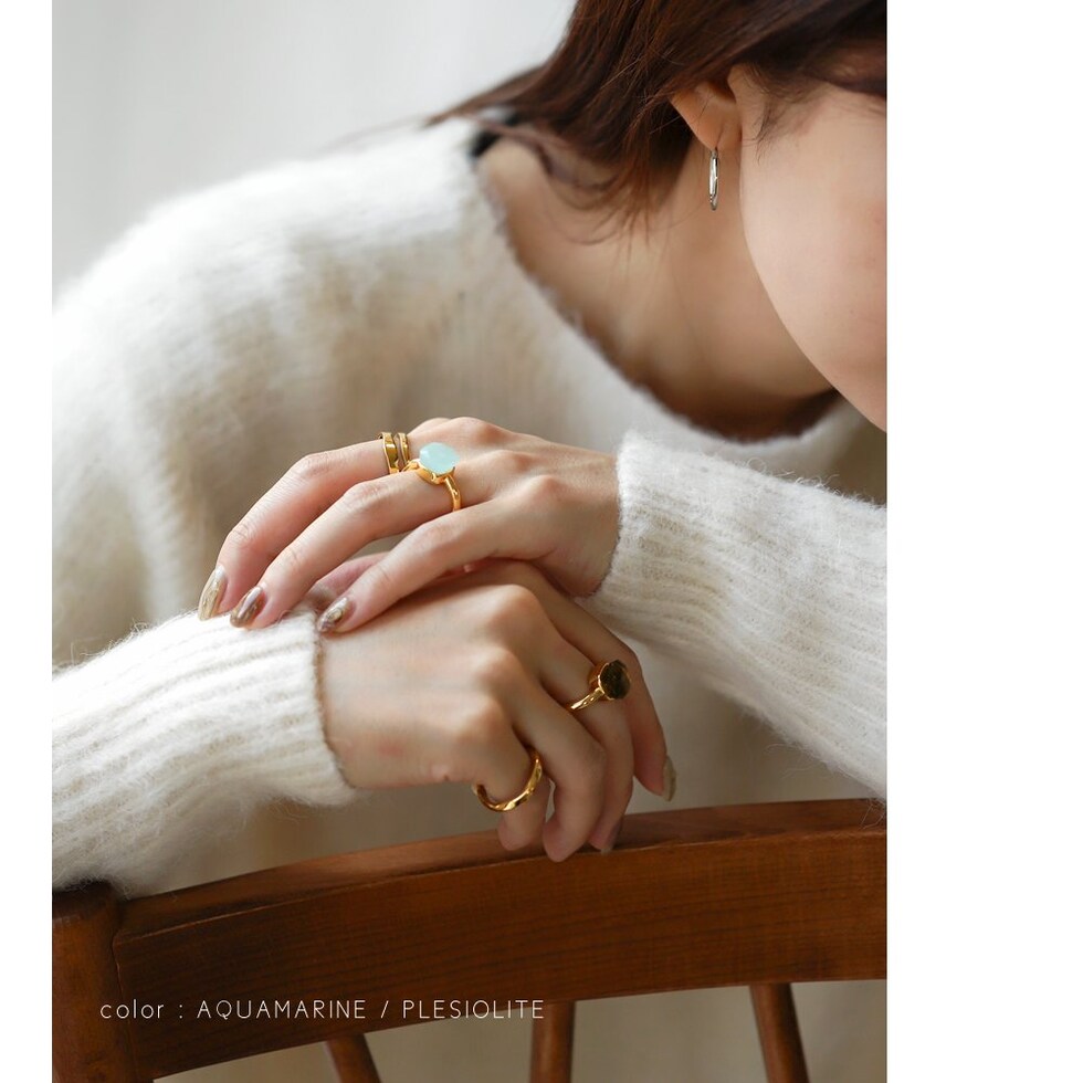 キラキラと煌き、身につけているだけで気分華やぐ色石リング。大人っぽカラーで大ぶりモチーフでも肌馴染みの良いアイテムです。2つ重ねづけすればグッとトレンド感ある手元に◎コーデの主役にぴったり。