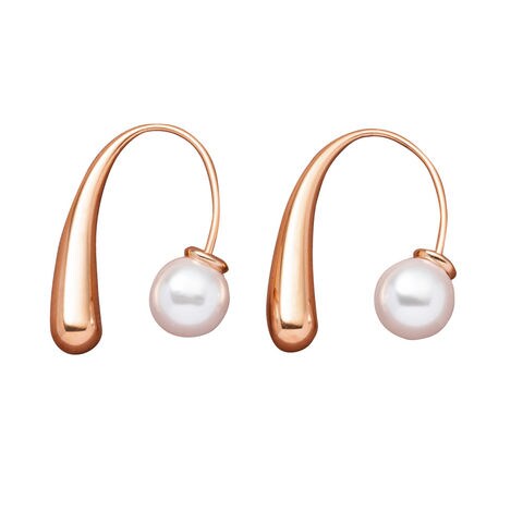 ぷっくりとしたドロップモチーフの先でパールキャッチが艶めくフックピアス。耳裏から覗く上品なパールと優美なラインが大人顔な印象。パールキャッチを外して、シンプルなフックピアスとしても使える2WAYデザイン◎錆びにくいステンレス製でデイリーに活躍しそう。