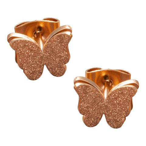ピアス ステンレス 金属アレルギー サージカルステンレス レディース つけっぱなし 2サイズ スタッド 蝶々 バタフライ 蝶 立体 メタル cream dot ゆうパケット [A:ピンクゴールド_ピアス]