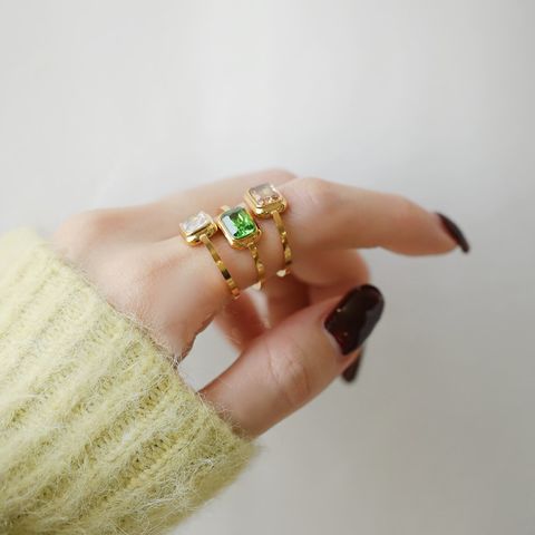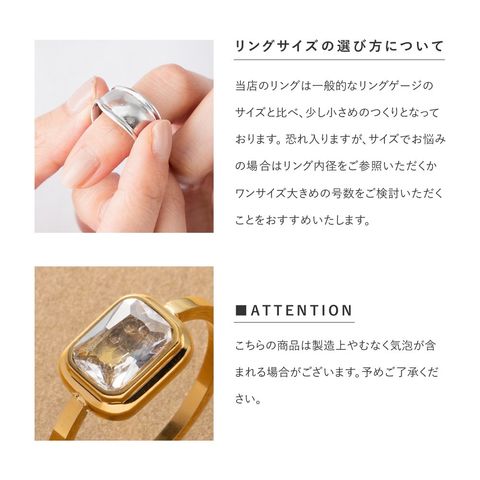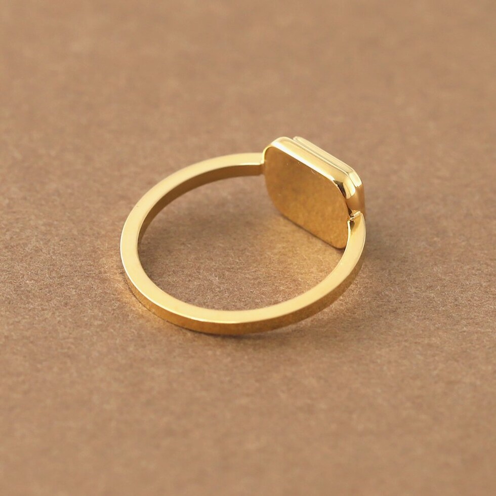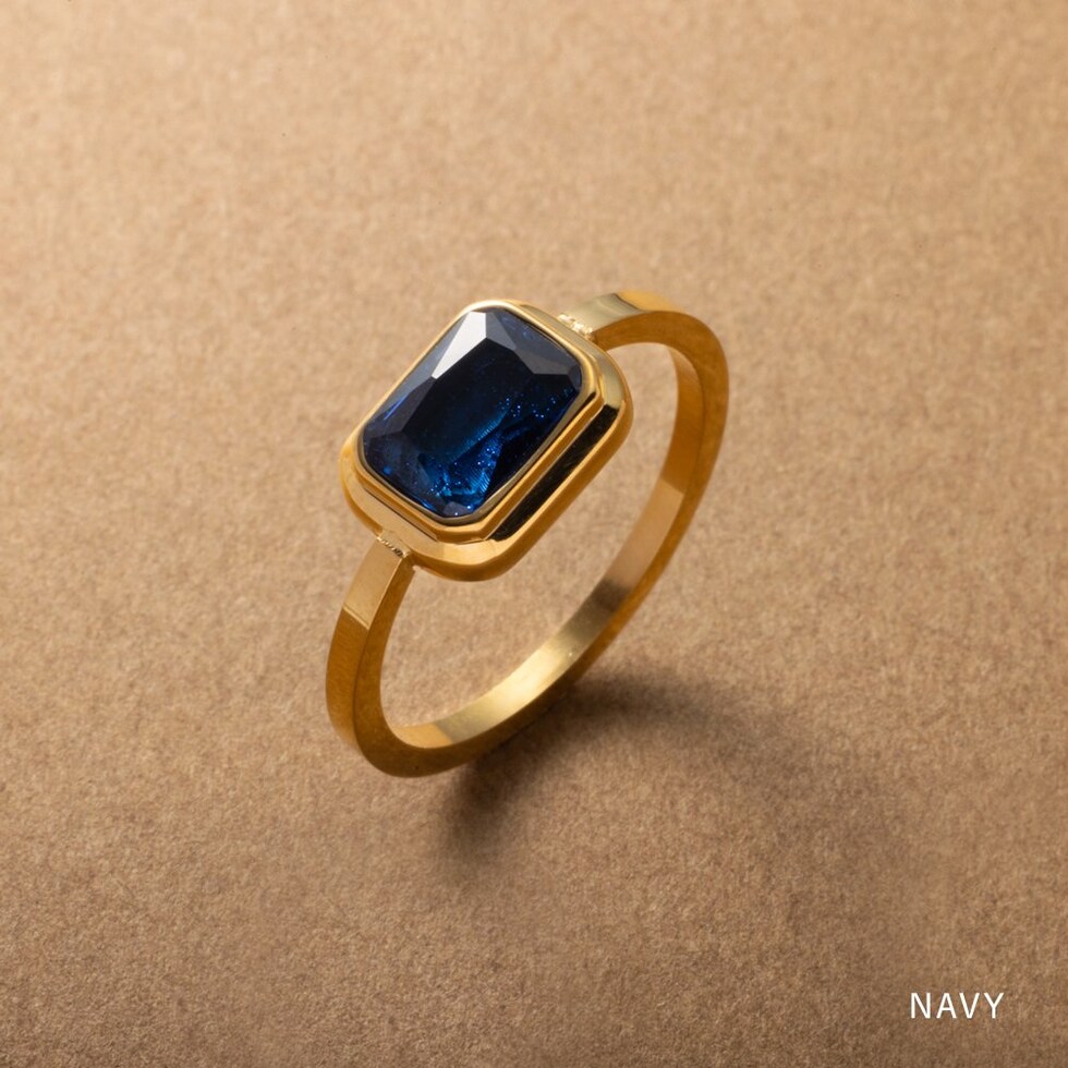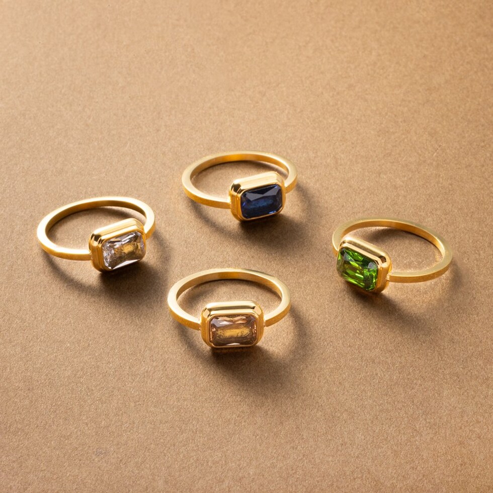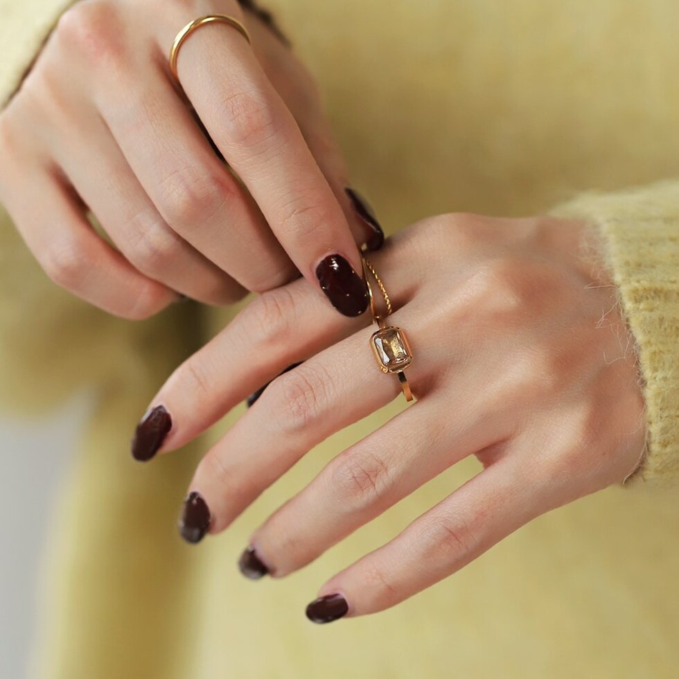 フラットカットを施したスクエアビジューがシャープに煌くリング。お洒落な色石アイテムは手元コーデの主役として大活躍間違いナシ◎色違いで重ねづけすればよりトレンド感がアップします。錆びにくいステンレス製でデイリーに活躍しそう。