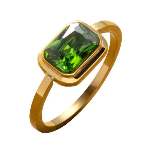 リング 指輪 ステンレス 金属アレルギー サージカルステンレス レディース つけっぱなし ガラス スクエア ビジュー 多面カット グリーン cream dot ゆうパケット [グリーン_17号]