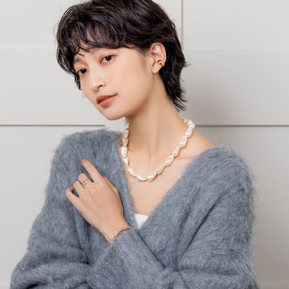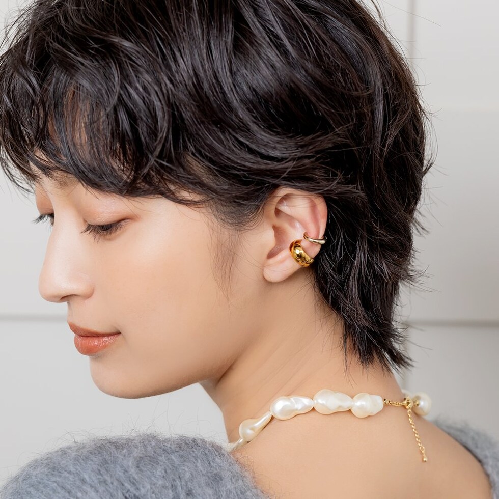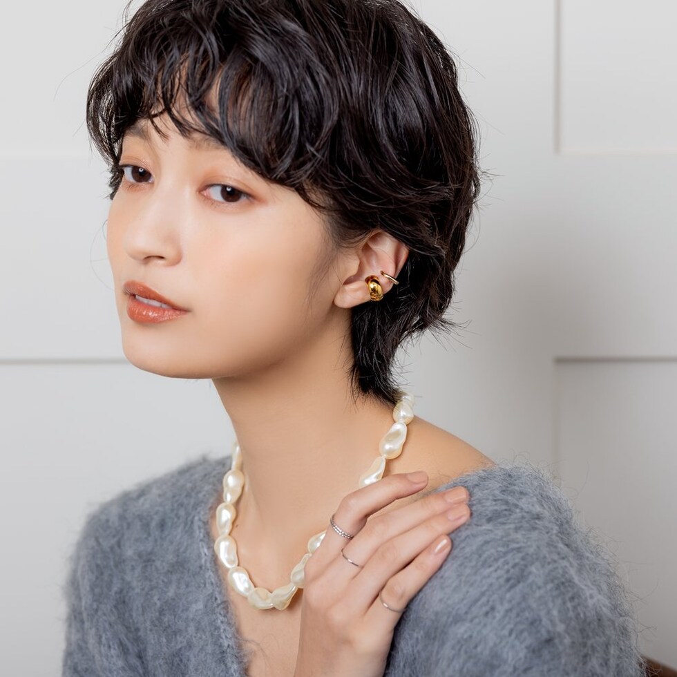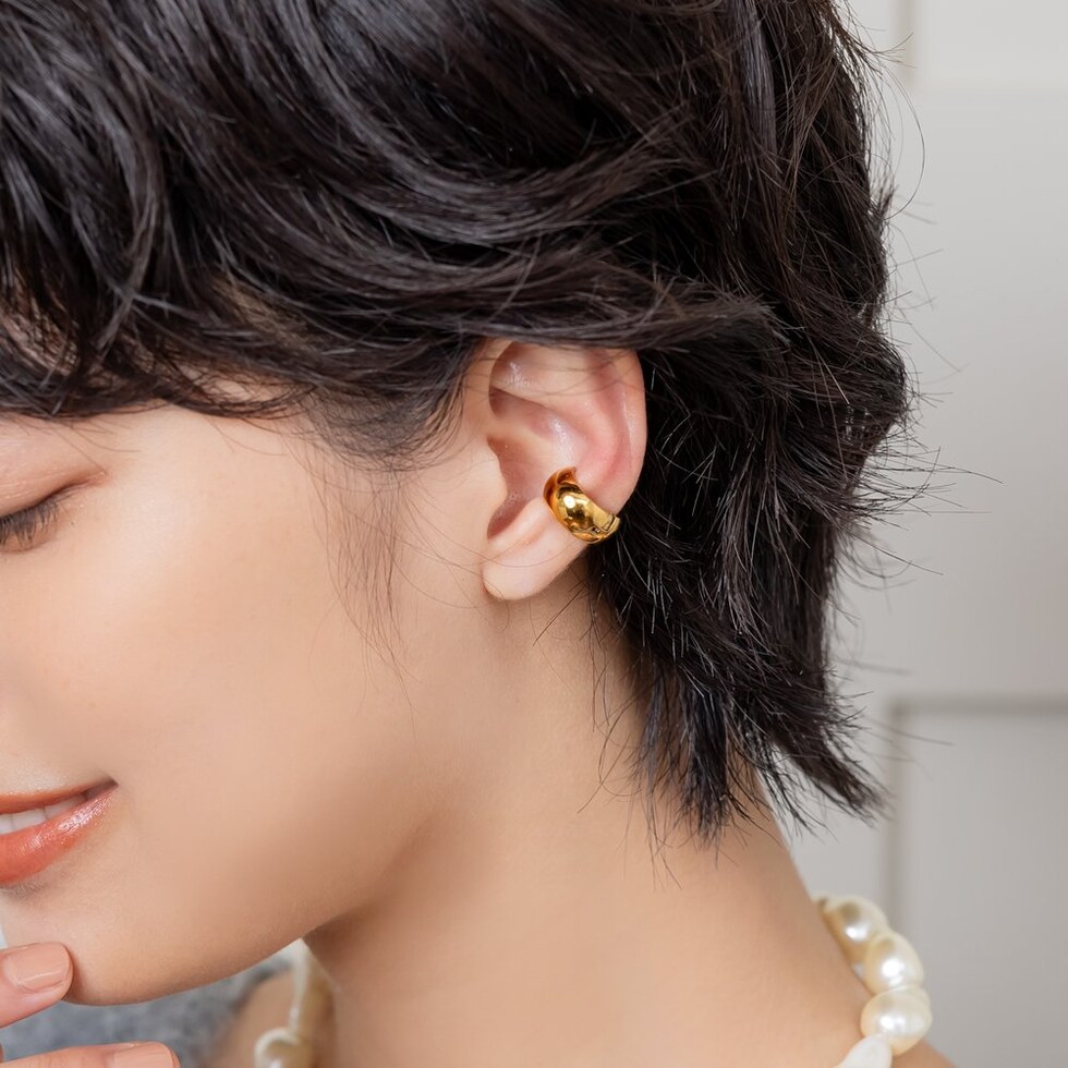 ぷっくりフォルムが程よい存在感を放つ片耳用イヤーカフ。艶やかなメタルがコーデにアクセントとモードな雰囲気をプラスします。挟むだけで簡単に着用でき、お手持ちのアイテムとの重ね付けもオススメなひと品です。