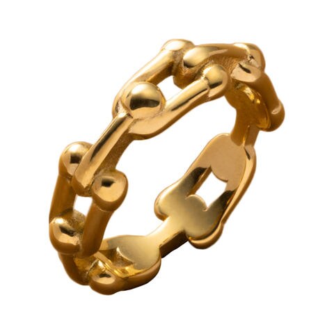 リンキングがモダンな存在感をプラスしてくるチェーンリング。個性の効いたデザインがひと味違った洗練された手元を演出してくれます。程よい存在感と錆びにくいステンレス製だからデイリーに活躍しそう。
