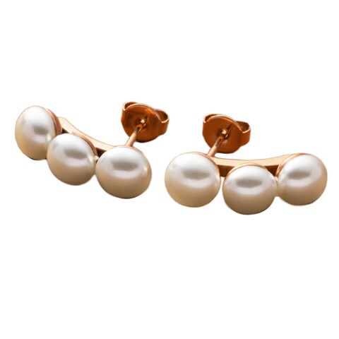 ピアス ステンレス 金属アレルギー サージカルステンレス レディース つけっぱなし パール 3連 2WAY cream dot ゆうパケット [ピンクゴールド_ピアス]