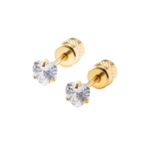 ピアス ステンレス 金属アレルギー サージカルステンレス レディース つけっぱなし ネジロック式 両耳用 ハート ビジュー スタッド サイズ豊富 cream dot ゆうパケット [ゴールド_3mm]
