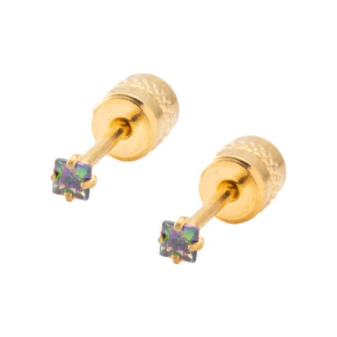 ピアス ステンレス 金属アレルギー サージカルステンレス レディース 80種類 つけっぱなし 限定色 一粒ビジュー ネジ式 カラーストーン 両耳用 スクエア 四角 cream dot ゆうパケット [【限定色】ゴールド×オーロラ_2mm]