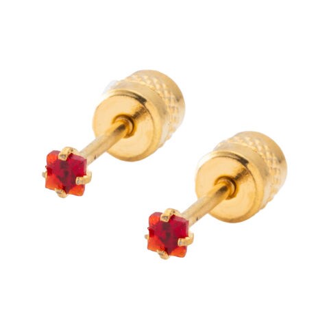 ピアス ステンレス 金属アレルギー サージカルステンレス レディース 80種類 つけっぱなし 限定色 一粒ビジュー ネジ式 カラーストーン 両耳用 スクエア 四角 cream dot ゆうパケット [ゴールド×レッド_2mm]