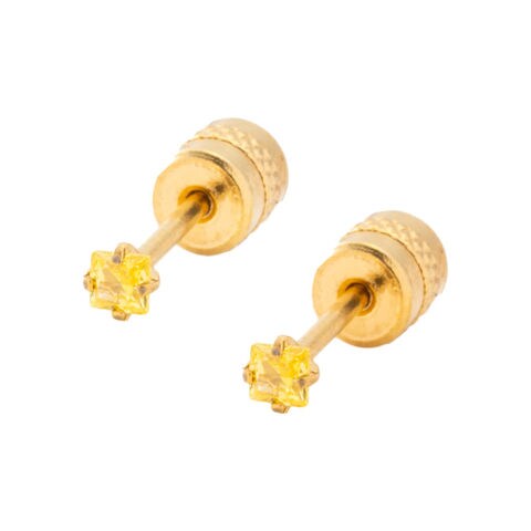 ピアス ステンレス 金属アレルギー サージカルステンレス レディース 80種類 つけっぱなし 限定色 一粒ビジュー ネジ式 カラーストーン 両耳用 スクエア 四角 cream dot ゆうパケット [ゴールド×イエロー_2mm]