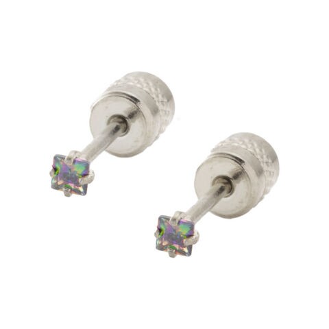 ピアス ステンレス 金属アレルギー サージカルステンレス レディース 80種類 つけっぱなし 限定色 一粒ビジュー ネジ式 カラーストーン 両耳用 スクエア 四角 cream dot ゆうパケット [【限定色】シルバー×オーロラ_2mm]
