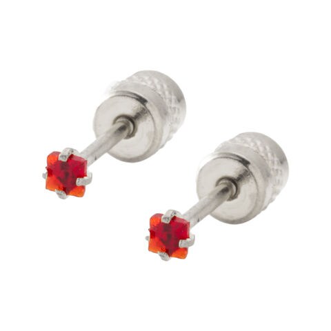 ピアス ステンレス 金属アレルギー サージカルステンレス レディース 80種類 つけっぱなし 限定色 一粒ビジュー ネジ式 カラーストーン 両耳用 スクエア 四角 cream dot ゆうパケット [シルバー×レッド_2mm]