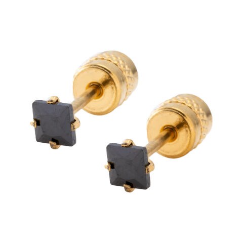 ピアス ステンレス 金属アレルギー サージカルステンレス レディース 80種類 つけっぱなし 限定色 一粒ビジュー ネジ式 カラーストーン 両耳用 スクエア 四角 cream dot ゆうパケット [ゴールド×ブラック_3mm]