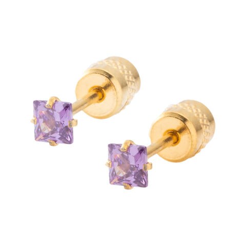 ピアス ステンレス 金属アレルギー サージカルステンレス レディース 80種類 つけっぱなし 限定色 一粒ビジュー ネジ式 カラーストーン 両耳用 スクエア 四角 cream dot ゆうパケット [ゴールド×パープル_3mm]