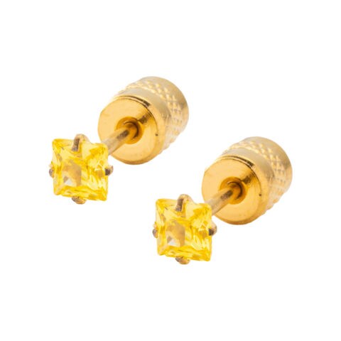 ピアス ステンレス 金属アレルギー サージカルステンレス レディース 80種類 つけっぱなし 限定色 一粒ビジュー ネジ式 カラーストーン 両耳用 スクエア 四角 cream dot ゆうパケット [ゴールド×イエロー_3mm]