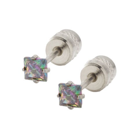 ピアス ステンレス 金属アレルギー サージカルステンレス レディース 80種類 つけっぱなし 限定色 一粒ビジュー ネジ式 カラーストーン 両耳用 スクエア 四角 cream dot ゆうパケット [【限定色】シルバー×オーロラ_3mm]