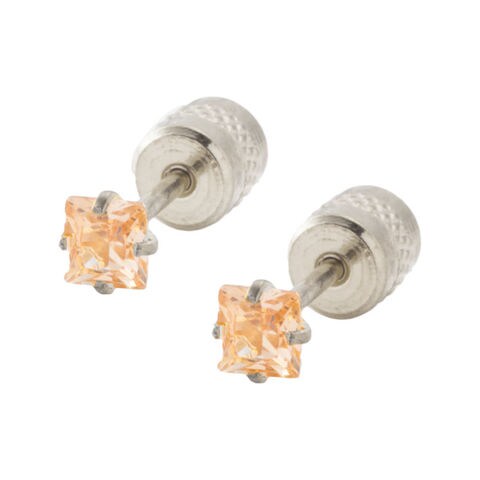 キャッチが落ちないネジロック式のスクエアビジュースタッドピアス。2mm~6mmのサイズ、ボディーカラー、ストーンカラーなど幅広く選べる全80展開です。同色のビジューが煌くキャッチで、前後どちらから見ても可愛い◎必ず使えるベーシックなデザインだから、シーンに合わせて複数買いするのもオススメ♪錆びにくく傷に強いステンレス製です。