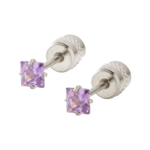 ピアス ステンレス 金属アレルギー サージカルステンレス レディース 80種類 つけっぱなし 限定色 一粒ビジュー ネジ式 カラーストーン 両耳用 スクエア 四角 cream dot ゆうパケット [シルバー×パープル_3mm]