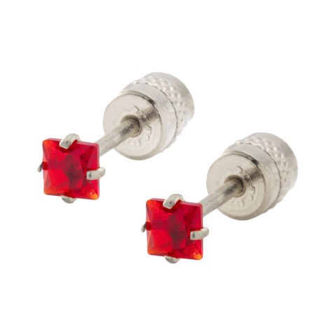 ピアス ステンレス 金属アレルギー サージカルステンレス レディース 80種類 つけっぱなし 限定色 一粒ビジュー ネジ式 カラーストーン 両耳用 スクエア 四角 cream dot ゆうパケット [シルバー×レッド_3mm]