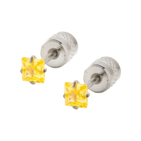 ピアス ステンレス 金属アレルギー サージカルステンレス レディース 80種類 つけっぱなし 限定色 一粒ビジュー ネジ式 カラーストーン 両耳用 スクエア 四角 cream dot ゆうパケット [シルバー×イエロー_3mm]