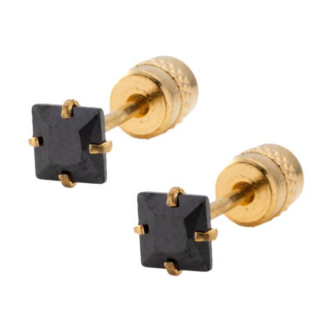 ピアス ステンレス 金属アレルギー サージカルステンレス レディース 80種類 つけっぱなし 限定色 一粒ビジュー ネジ式 カラーストーン 両耳用 スクエア 四角 cream dot ゆうパケット [ゴールド×ブラック_4mm]