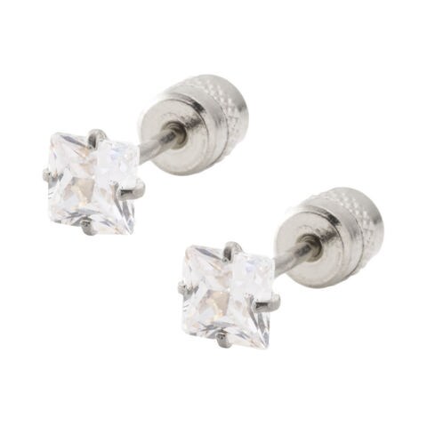 キャッチが落ちないネジロック式のスクエアビジュースタッドピアス。2mm~6mmのサイズ、ボディーカラー、ストーンカラーなど幅広く選べる全80展開です。同色のビジューが煌くキャッチで、前後どちらから見ても可愛い◎必ず使えるベーシックなデザインだから、シーンに合わせて複数買いするのもオススメ♪錆びにくく傷に強いステンレス製です。