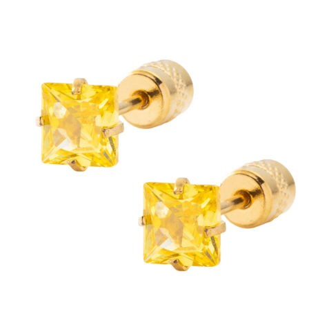 ピアス ステンレス 金属アレルギー サージカルステンレス レディース 80種類 つけっぱなし 限定色 一粒ビジュー ネジ式 カラーストーン 両耳用 スクエア 四角 cream dot ゆうパケット [ゴールド×イエロー_5mm]