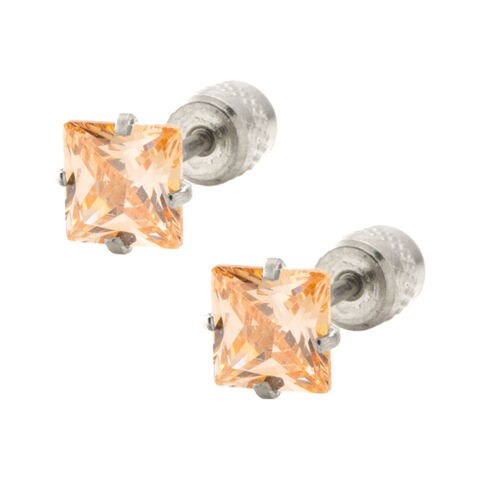 キャッチが落ちないネジロック式のスクエアビジュースタッドピアス。2mm~6mmのサイズ、ボディーカラー、ストーンカラーなど幅広く選べる全80展開です。同色のビジューが煌くキャッチで、前後どちらから見ても可愛い◎必ず使えるベーシックなデザインだから、シーンに合わせて複数買いするのもオススメ♪錆びにくく傷に強いステンレス製です。