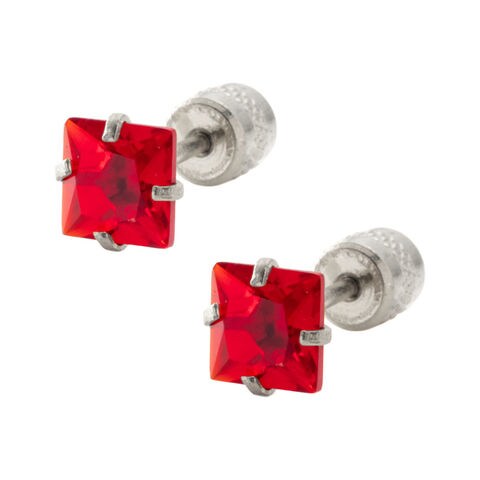 ピアス ステンレス 金属アレルギー サージカルステンレス レディース 80種類 つけっぱなし 限定色 一粒ビジュー ネジ式 カラーストーン 両耳用 スクエア 四角 cream dot ゆうパケット [シルバー×レッド_5mm]