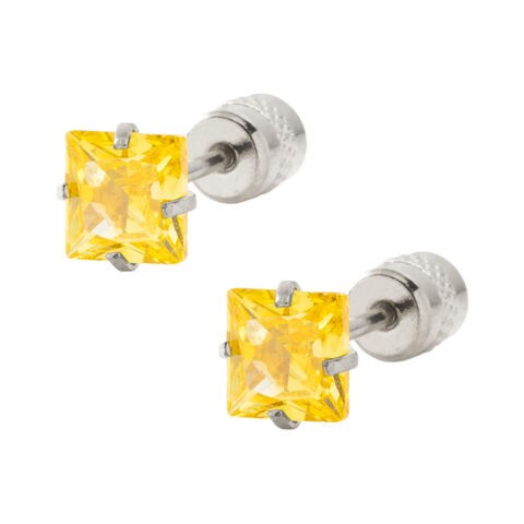 ピアス ステンレス 金属アレルギー サージカルステンレス レディース 80種類 つけっぱなし 限定色 一粒ビジュー ネジ式 カラーストーン 両耳用 スクエア 四角 cream dot ゆうパケット [シルバー×イエロー_5mm]