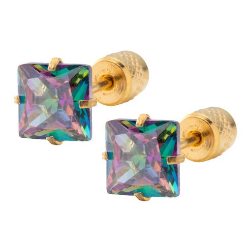 ピアス ステンレス 金属アレルギー サージカルステンレス レディース 80種類 つけっぱなし 限定色 一粒ビジュー ネジ式 カラーストーン 両耳用 スクエア 四角 cream dot ゆうパケット [【限定色】ゴールド×オーロラ_6mm]