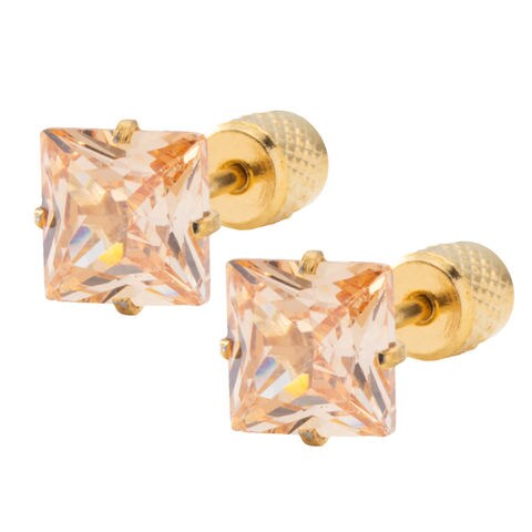 ピアス ステンレス 金属アレルギー サージカルステンレス レディース 80種類 つけっぱなし 限定色 一粒ビジュー ネジ式 カラーストーン 両耳用 スクエア 四角 cream dot ゆうパケット [ゴールド×ベージュ_6mm]