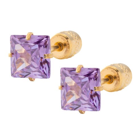 ピアス ステンレス 金属アレルギー サージカルステンレス レディース 80種類 つけっぱなし 限定色 一粒ビジュー ネジ式 カラーストーン 両耳用 スクエア 四角 cream dot ゆうパケット [ゴールド×パープル_6mm]