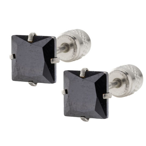ピアス ステンレス 金属アレルギー サージカルステンレス レディース 80種類 つけっぱなし 限定色 一粒ビジュー ネジ式 カラーストーン 両耳用 スクエア 四角 cream dot ゆうパケット [シルバー×ブラック_6mm]