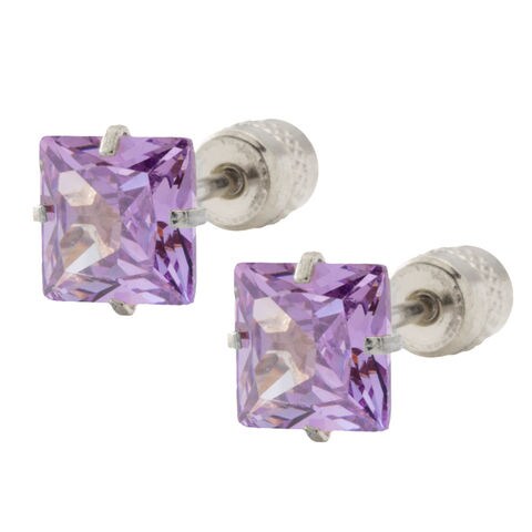 ピアス ステンレス 金属アレルギー サージカルステンレス レディース 80種類 つけっぱなし 限定色 一粒ビジュー ネジ式 カラーストーン 両耳用 スクエア 四角 cream dot ゆうパケット [シルバー×パープル_6mm]