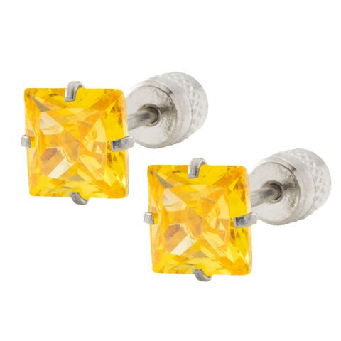 ピアス ステンレス 金属アレルギー サージカルステンレス レディース 80種類 つけっぱなし 限定色 一粒ビジュー ネジ式 カラーストーン 両耳用 スクエア 四角 cream dot ゆうパケット [シルバー×イエロー_6mm]