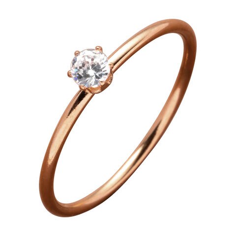 シンプルな一粒ビジューのステンレス製華奢リング。断面がアーチ形の甲丸デザインで、シンプルでとっても華奢なフォルムが高級感漂う逸品。錆びにくいステンレス製で毎日使いできそう◎