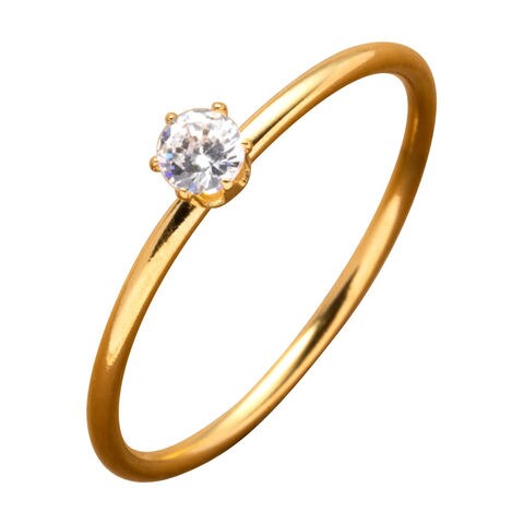 リング 指輪 ステンレス 金属アレルギー サージカルステンレス レディース つけっぱなし スキンジュエリー 一粒 ビジュー 極細 細い cream dot ゆうパケット [ゴールド_17号]