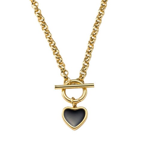 ネックレス ステンレス 金属アレルギー サージカルステンレス レディース つけっぱなし ハート マンテル ごつめ ショート チェーン レッド cream dot ゆうパケット [ゴールド×ブラック_ワンサイズ]