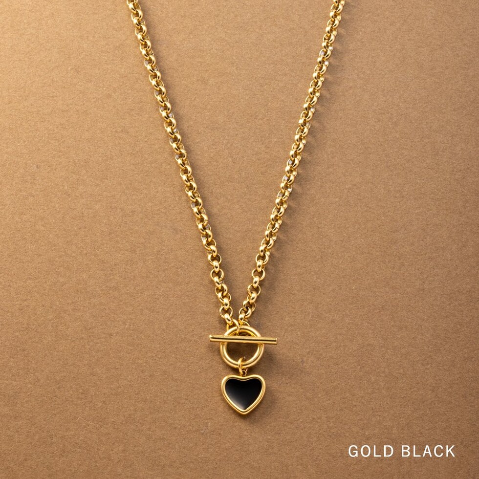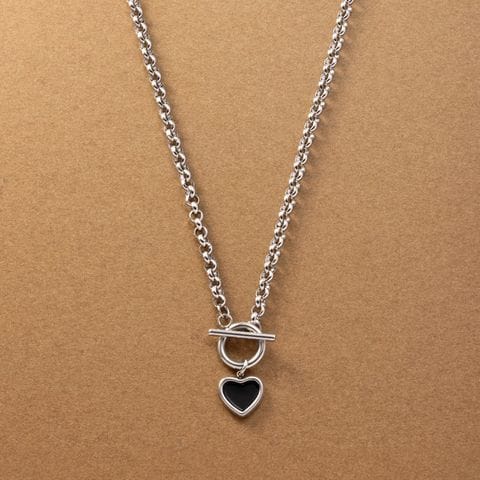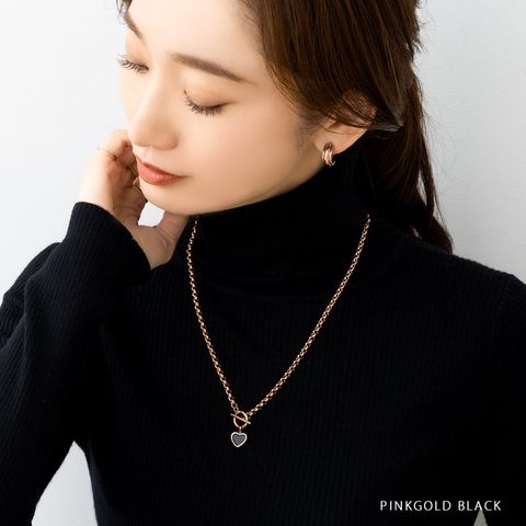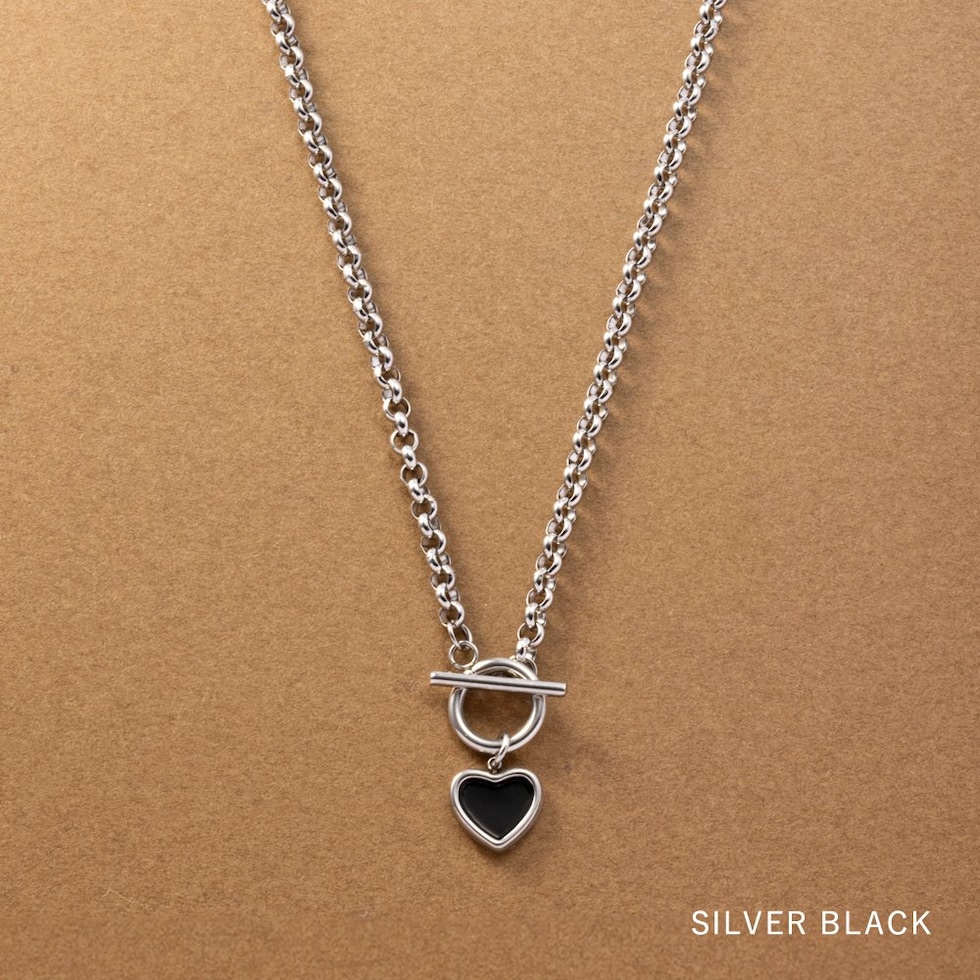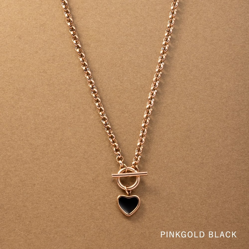 重厚感のあるチェーンとハートモチーフのステンレス製マンテルネックレス。女性らしい遊び心あるモチーフと辛口なチェーンがひと味違う今っぽいスタイルを完成させます。程よいボリュームと錆びにくいステンレス製でデイリーに活躍するひと品。