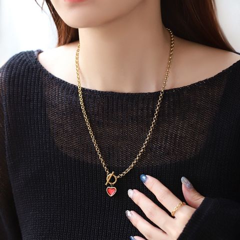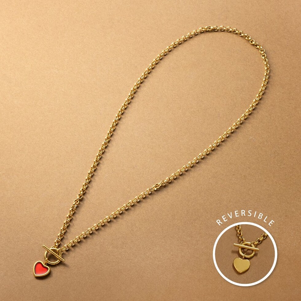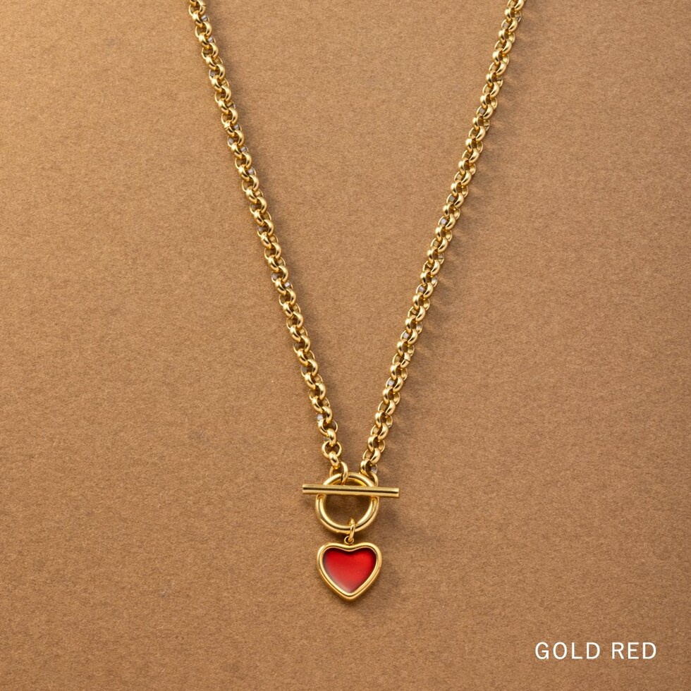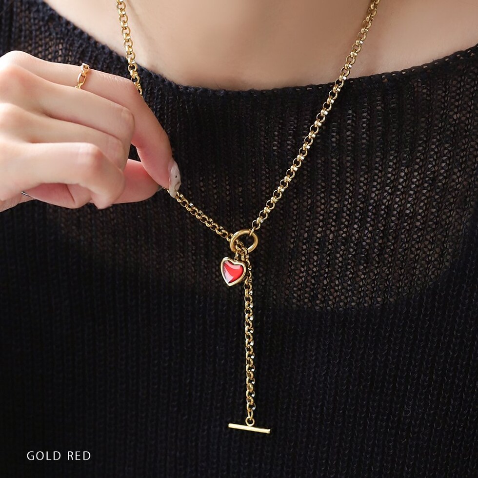 ネックレス ステンレス 金属アレルギー サージカルステンレス レディース つけっぱなし ハート マンテル ごつめ ショート チェーン レッド cream dot ゆうパケット [ゴールド×レッド_ワンサイズ]