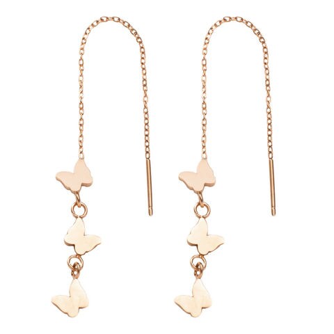 ピアス ステンレス 金属アレルギー サージカルステンレス レディース アメリカン つけっぱなし バタフライ 蝶 小ぶり 小さい 3連 揺れる cream dot ゆうパケット [ピンクゴールド_ピアス]
