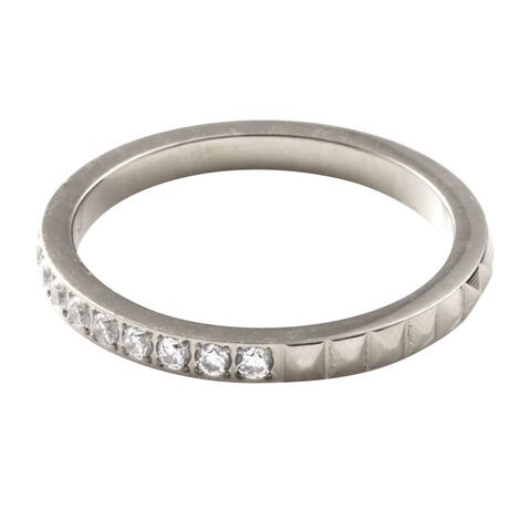 リング 指輪 ステンレス 金属アレルギー サージカルステンレス レディース つけっぱなし 3way ビジュー スタッズ ハーフエタニティ リバーシブル cream dot ゆうパケット [シルバー_12号]