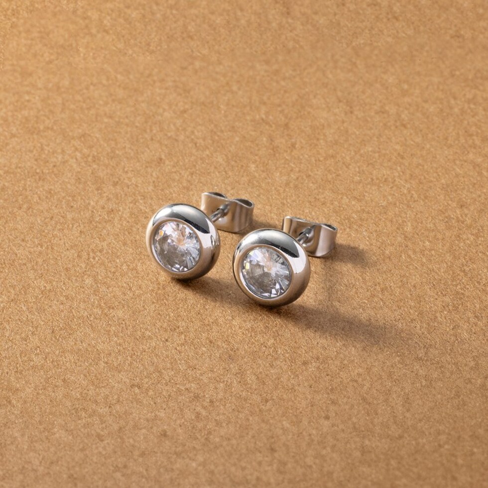 ピアス ステンレス 金属アレルギー サージカルステンレス レディース つけっぱなし 一粒 ビジュー キュービックジルコニア ぷっくり メタル 存在感 スタッド cream dot ゆうパケット [シルバー_ピアス]