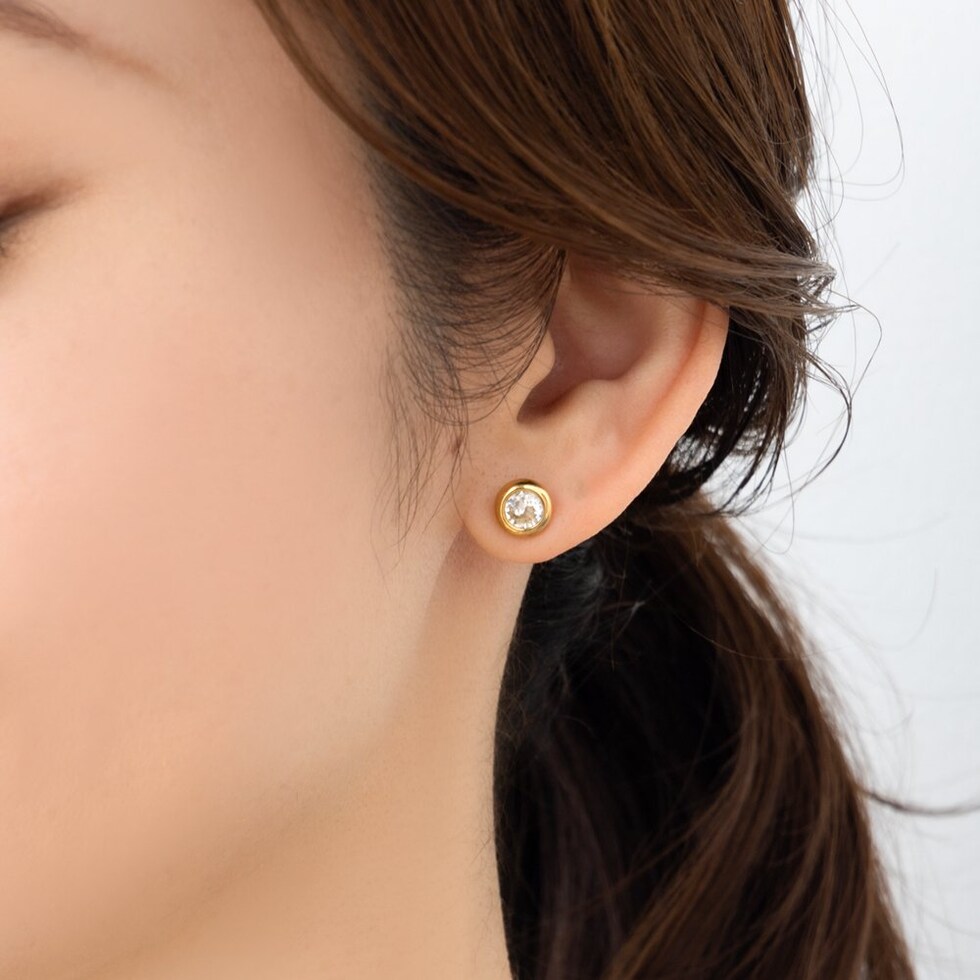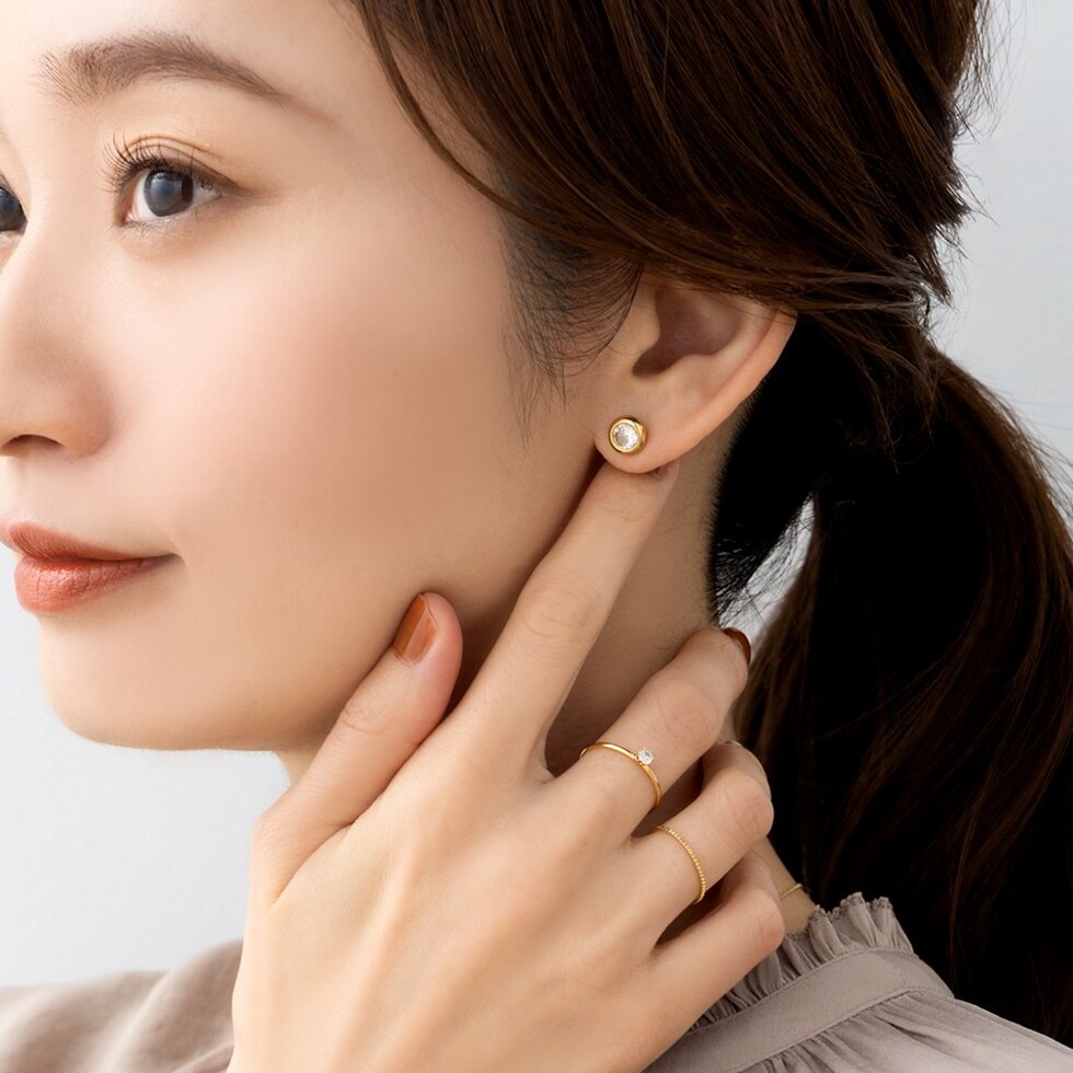 シンプルで品のある一粒ビジューのピアス。ぷっくりとした艶やかなメタルフレームが、さりげなくも存在感を引き立ててくれるデザイン。錆びにくく傷に強いステンレス製でデイリーに活躍間違いナシのひと品です。