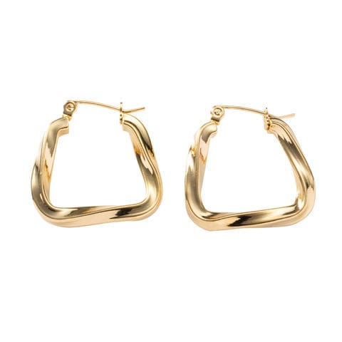 ひねりを効かせたツイストラインが優美なフープピアス。シンプルだけど動きのある上品なフォルムが洗練されたオトナの耳元へと導きます。着脱が楽ちんなキャッチレスデザインでデイリーに活躍しそう。錆びにくく傷に強いステンレス製で、長時間の着用も安心の低アレルギー素材です。